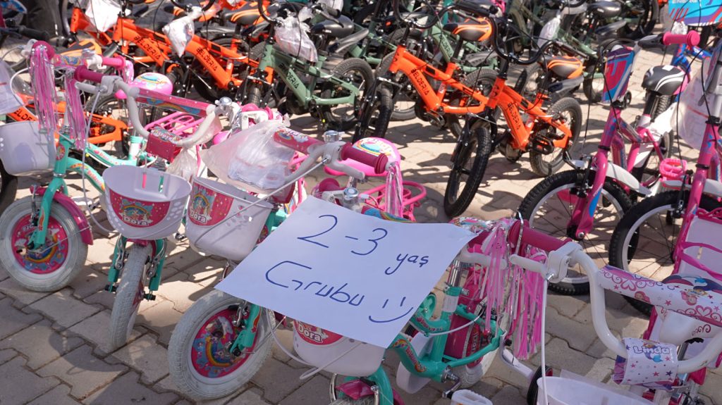 Amasya İHH’nın destekleriyle uygulanan “Bir Bisiklet Bir Tebessüm Projesi” ile 400 adeti Hatay’da, 309 adeti Adıyaman’da ve 291 adeti Kahramanmaraş’ta olmak üzere 1000 adet bisikleti depremlerden etkilenen yetim ve ihtiyaç sahibi çocuklara hediye edildi.