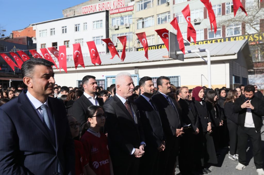 İstanbul Valisi Davut Gül, Kâğıthane’de Yaşar Doğu Ortaokulu’nu ziyaret ederek İstiklal Marşı törenine katıldı, öğrencilerle buluştu ve yürütülen eğitim faaliyetlerine ilişkin bilgi aldı.