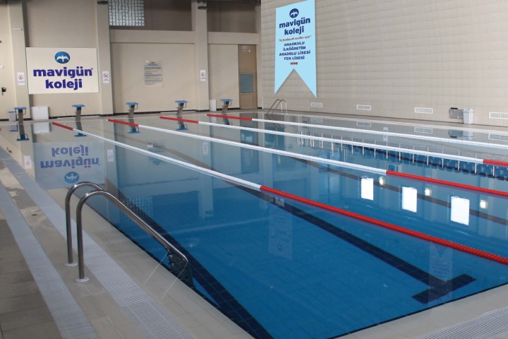 Mavigün Olimpik Yüzme Havuzunda öğrenciler yüzme tekniklerini ve becerilerini profesyonel eğitimciler tarafından kazanmaktalar.